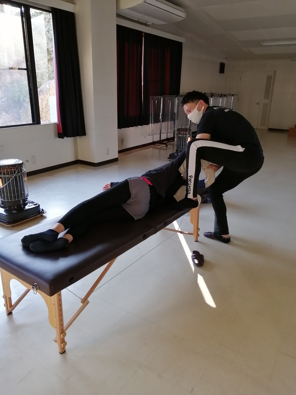 ストレッチや自重トレーニングの指導を受けました。